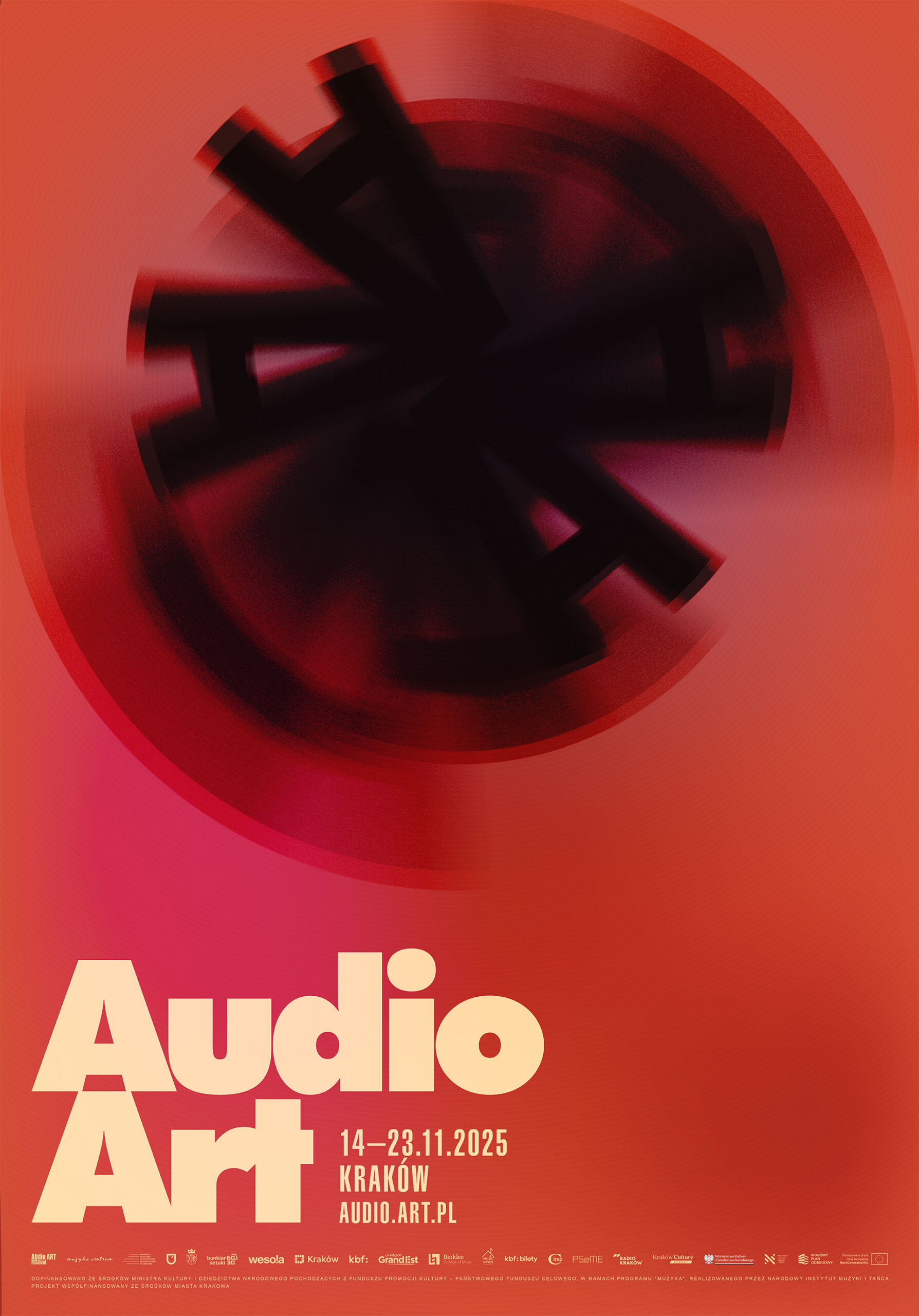 Ewa and Jacek Doroszenko’s audiovisual project consists of video works, large-format graphic installations and a sound installation. The visual form of the works presented results directly from the sound sphere. Revealing the acoustic space of reality, the duo experiments with new technologies, relevant to the modern digital age. The graphic installations illustrate the path that sound material travels in the process of music production, especially electronic music: recording, reproduction, deconstruction, frequency cutting, working with the spectrum, compression, looping and distortion.